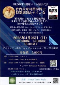 竹内先生ご講演@浜松 2026年4月2日 私が所属するGROWTH健康つくり協会 代表の竹内久米司薬学博士の講演のご案内です 4月26日14時~ アクトシティ コングレスセンター(22・23会議室) 参加費 5000円 「胎児期から始まる脳環境革命」 長年脳科学の研究をされてこられた竹内先生。 経皮毒の著者でもあられます。 身体に影響のあるもの、細胞レベルで体を整えるもの。 日常生活のある様々な体への影響を知り 上手に付き合っていけたらよいですね。 共有: X で共有 (新しいウィンドウで開きます) X Facebook で共有 (新しいウィンドウで開きます) Facebook Tumblr で共有 (新しいウィンドウで開きます) Tumblr Pinterest で共有 (新しいウィンドウで開きます) Pinterest いいね:いいね 読み込み中…
